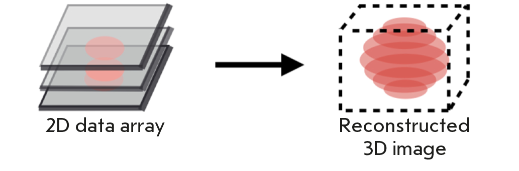 Techniques based on three fundamental microscopy techniques have conventionally been employed for 2D visualization: electron microscopy (EM) [1], optical microscopy (OM) [2], and scanning probe microscopy (SPM) [3]. These approaches have a rather broad scope of application but differ in their key characteristics and provide different types of information about the investigated objects. Thus, EM and SPM allow one to record images with a spatial resolution of several nanometers, making it possible to identify various components of the internal cell structure. The significant drawbacks of these methods include the small field of view and the infeasibility of obtaining information about specimen composition. In contrast, the use of highly specific immunostaining (including multicolor immunostaining) in OM allows for a specific reconstruction of the spatial distribution of the objects of interest (e.g., membrane proteins responsible for any cell–cell interaction process). In many cases, OM can be employed to work with living tissues. Diffraction-limited resolution is the main shortcoming of this method. The Abbe criterion d > λ/2n suggests that a high spatial resolution is achieved at small wavelengths and high refractive index of the medium. An axial (Z-axis) resolution of up to 500 nm and up to 250 nm in the lateral (XY) plane can be achieved when using confocal optical microscopy. Nevertheless, this limitation can be obviated by modern computer processing software and the use of multibeam illumination, which underlies such methods as stochastic optical reconstruction microscopy (STORM) [4] and stimulated emission depletion (STED) microscopy [5].