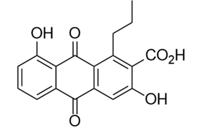Рис. 4. Структура идентифицированного активного компонента К-1115А (3,8-дигидрокси-9,10-диоксо-1-пропилантрацен-2-карбоновая кислота)