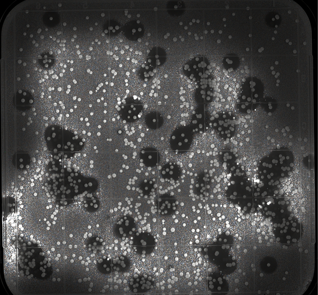 Fig. 4. An assay of inhibition of the growth zones of the target bacteria Escherichia coli ΔlptD by yeast clones transfected with pGAP_AMP