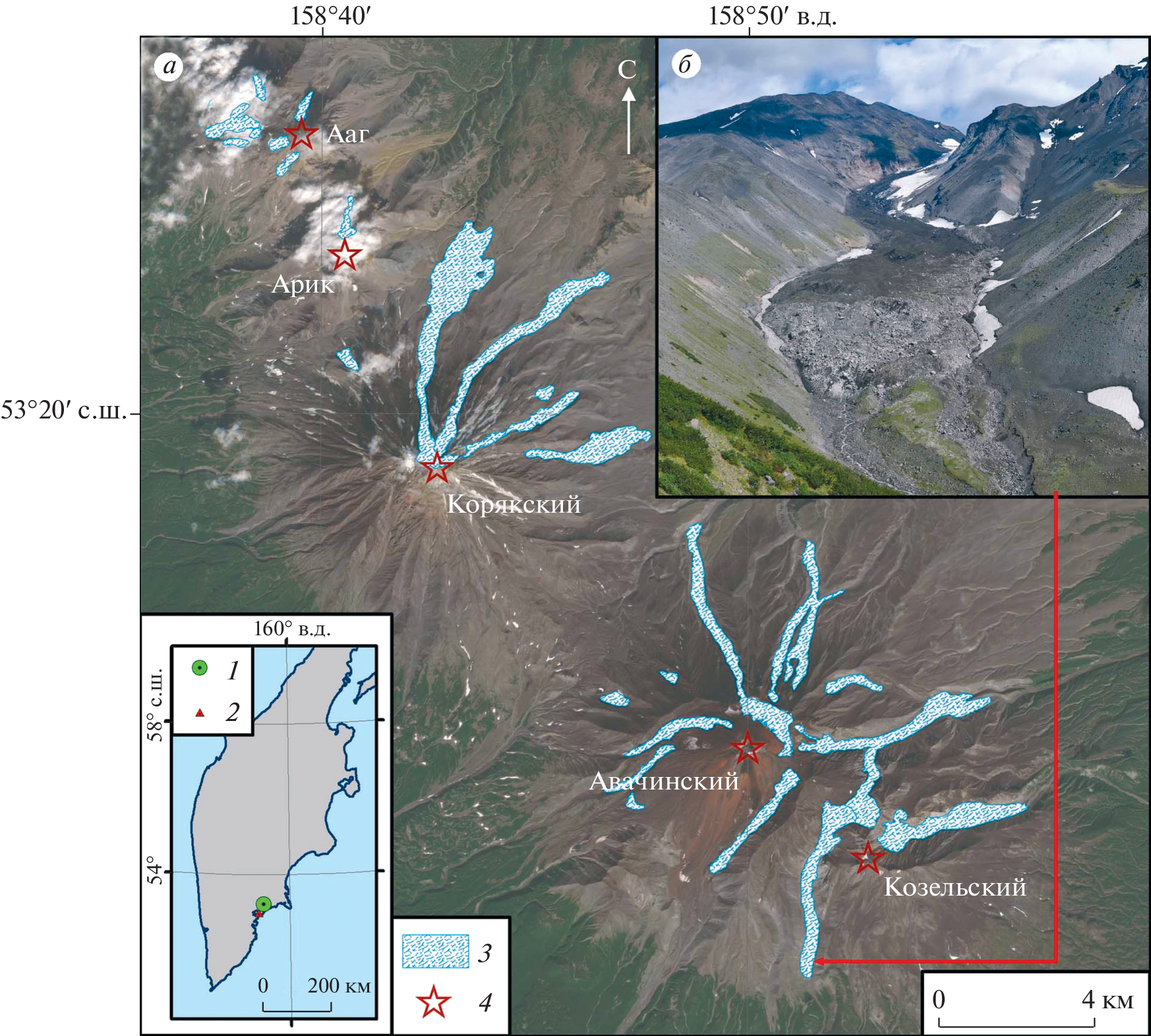 - Muraviev A.Ya. Distribution and morphology of present-day glaciers on Kamchatka. Led i Sneg. Ice and Snow. 2020, 60 (3): 325–342. https://doi.org/10.31857/S2076673420030043 [In Russian].