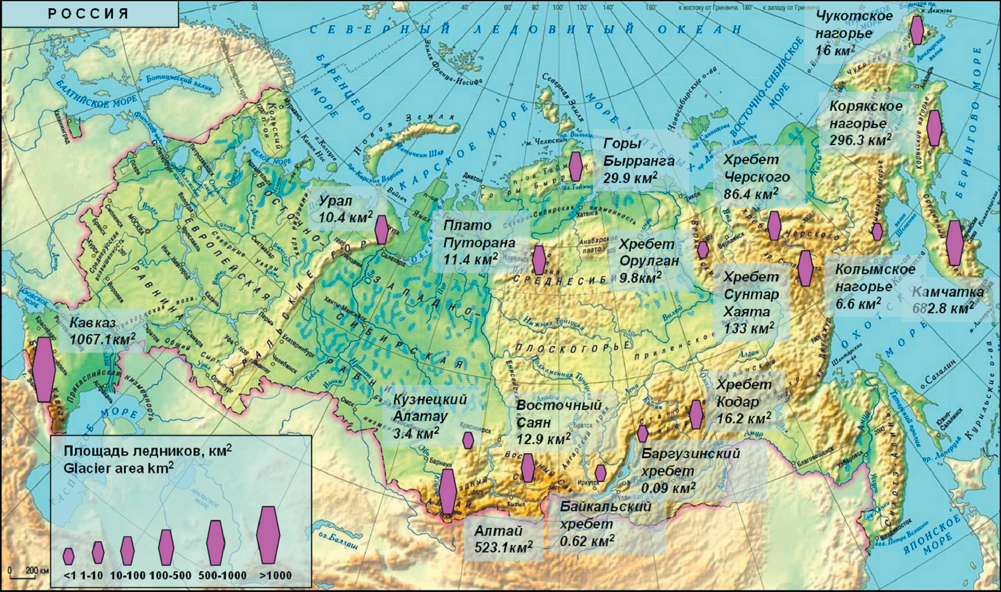 Проведённые в последнее время исследования позволили получить детальную картину изменений ледников в наиболее обеспеченных данными горных районах России. Для оледенения Кавказа получены данные на временные срезы 1911, 1952, 2000, 2014, 2018 и 2020 г.; для Алтая – на 1850, 1952, 2003 и 2018 г. Для крупных узлов оледенения Центрального Алтая – Катунского, Южно- и Северо-Чуйского хребтов дополнительно на 1968, 2008, 2017 г. В обоих районах выявлены устойчивое сокращение площади ледников с начала ХХ в. и ускорение темпов сокращения в начале ХХI в. Для исследования ледников Камчатки были использованы данные Каталога ледников СССР и снимки с разных спутников и за разные годы (2007–2019). Выявлено множество ледников, ранее не зарегистрированных в Каталоге ледников СССР. Площадь оледенения в разных районах Камчатки со времени первой каталогизации изменялась крайне неравномерно, что связано со значительными различиями в морфологии ледников. Ледники вулканических районов увеличили свои размеры или оставались стационарными; здесь нет тенденции к сокращению ледников из-за мощной поверхностной морены, состоящей из вулканогенного материала. Сравнение данных Каталога ледников СССР (1965–1982) и Каталога ледников России (2017–2019) показывает сокращение площади оледенения с середины ХХ в. до конца второй декады ХХI в. во всех горных районах России за исключением вулканических областей Камчатки.