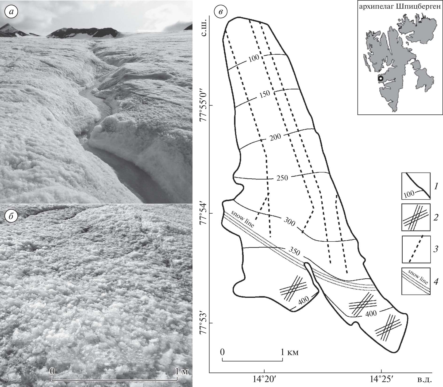 10. Solovyanova I.Yu., Mavlyudov B.R. Some features of the distribution of surface streams on the glaciers of West Spitsbergen. Kompleksnye issledovaniya prirody Shpicbergena. Comprehensive studies of the nature of Svalbard. 2004, 4: 216–229 [In Russian].
