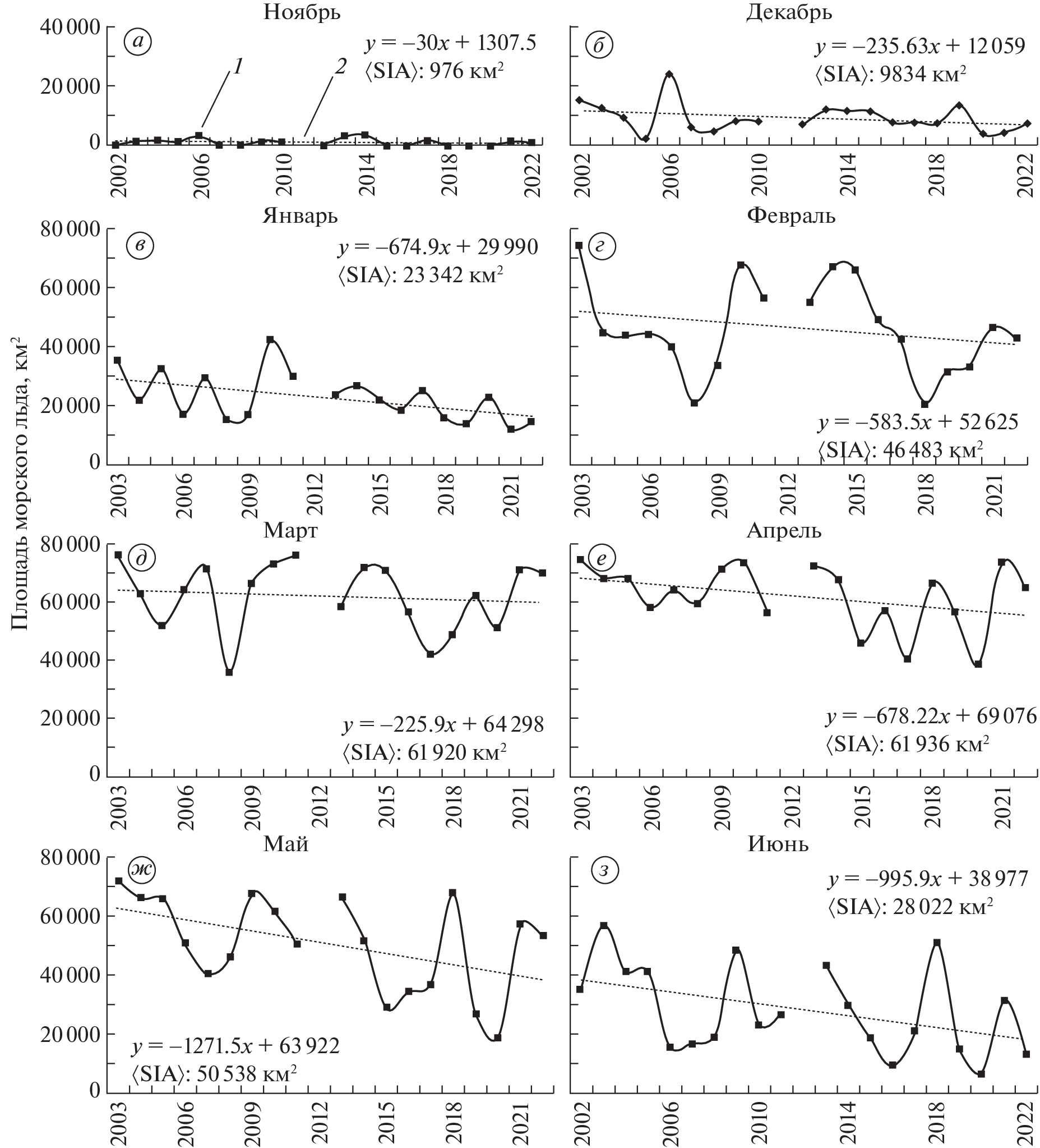 - Fedorov V.M., Grebennikov P.B., Frolov D.M. Assessment of the role of the insolation factor in changes in the area of sea ice in the Russian Arctic. Earth’s Сryosphere. 2020. 14 (3): 38–50 [In Russian]. https://doi.org/10.21782/KZ1560-7496-2020-3(38-50)