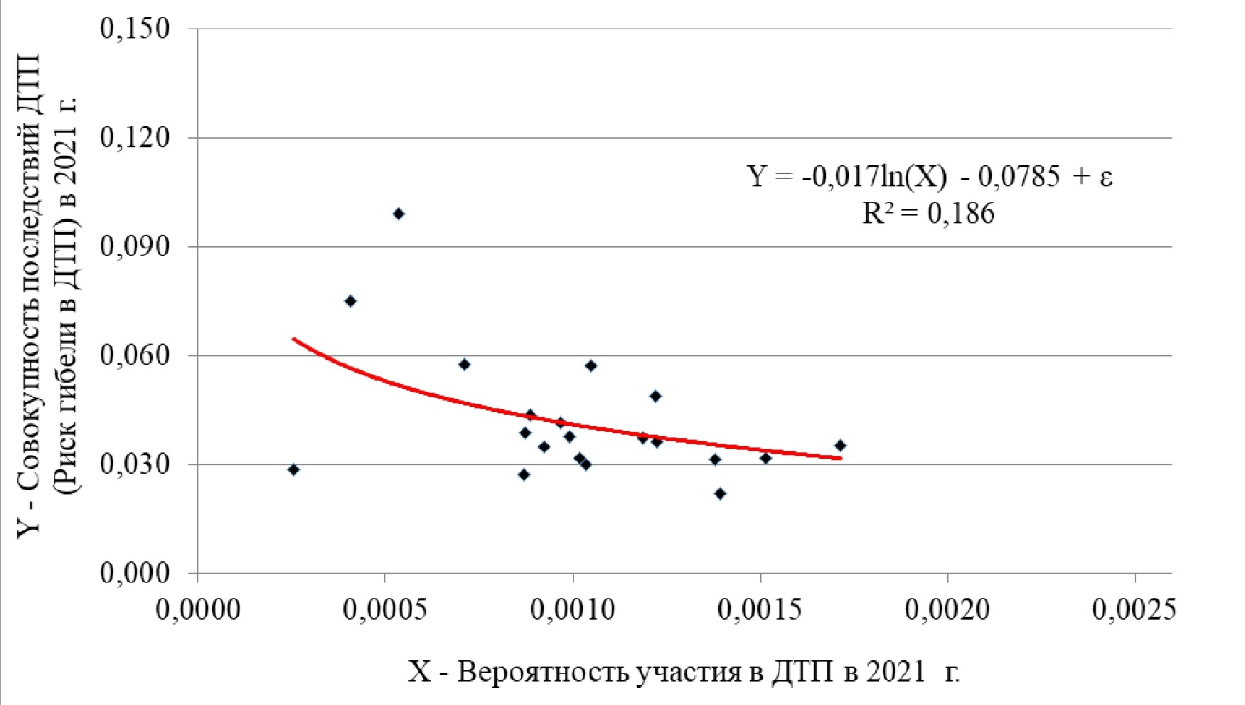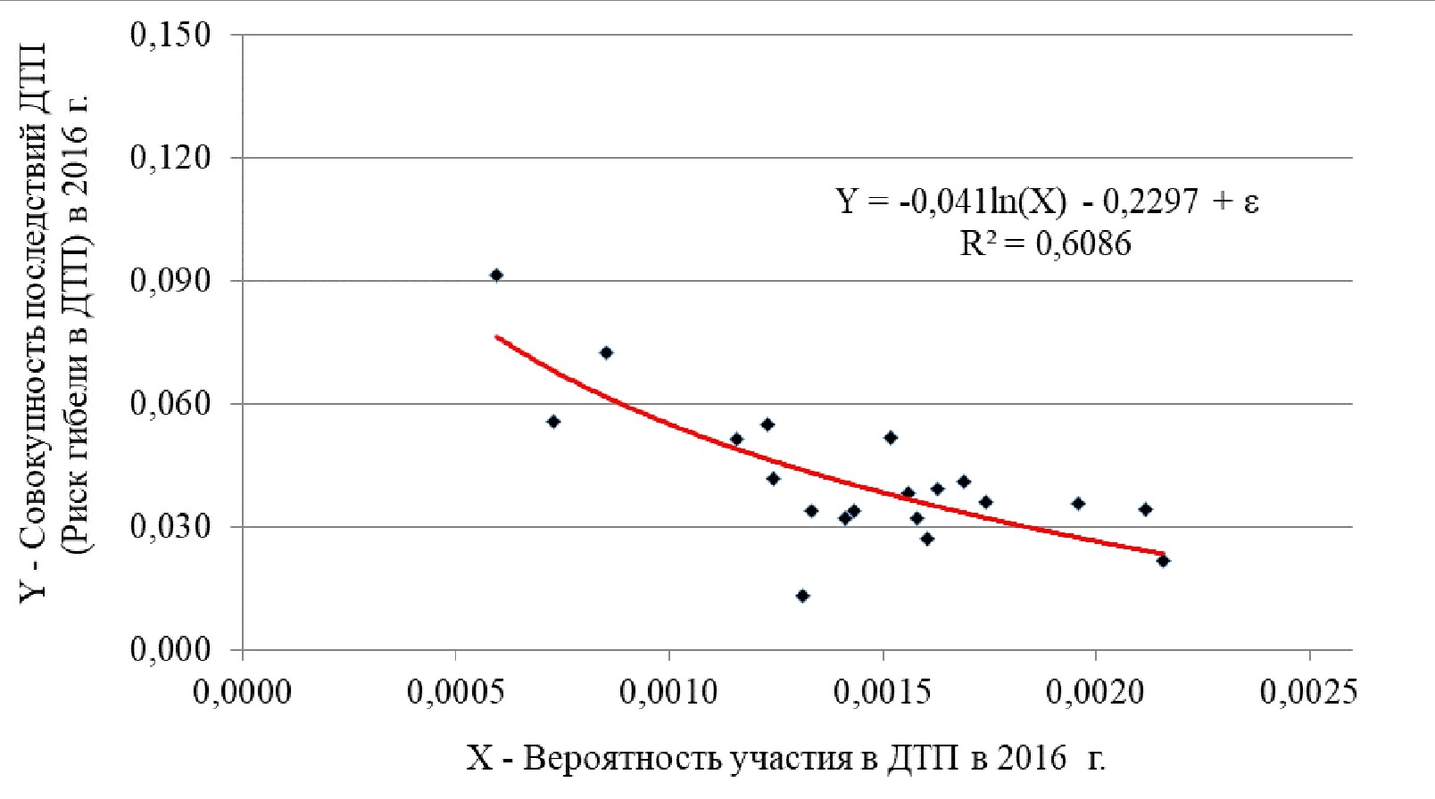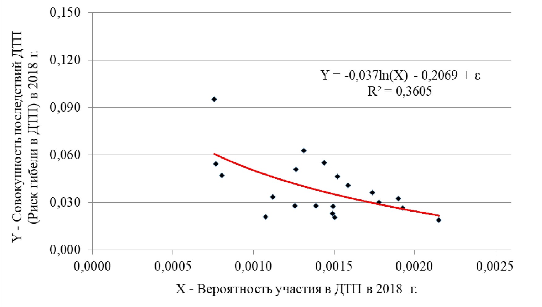 При оценке специфики рисков аварийности [6; 11; 12; 13; 14; 15] анализировать нужно как общий вид зависимостей таблицы 3, так и их динамику во времени, причем с учетом пространственных изменений. Попробуем провести этот анализ.