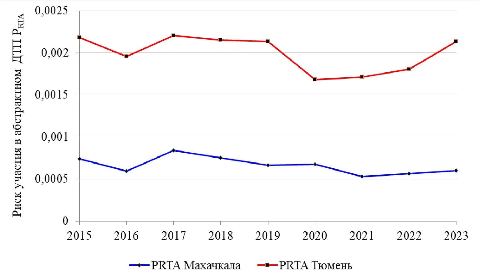 Spatial and temporal dynamics of the specifics of the risk of road traffic accidents in large Russian cities (2015–2023)