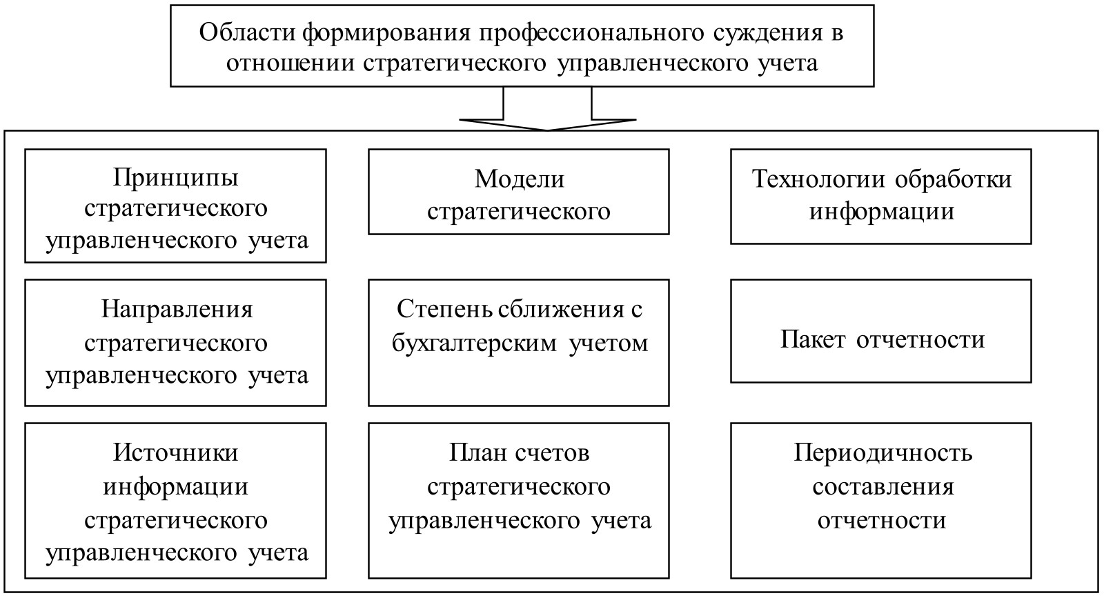 Систематизация современных концепций, сложившихся трендов и подходов к организации стратегического управленческого учета в экономических субъектах позволила выделить основные области формирования профессионального суждения (рисунок 3).