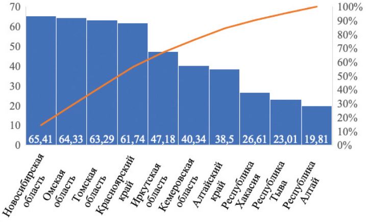 Новосибирская область | 1,571 | 58,4 | 0,862 | 117 | 3549 | 2,03 | 210 | 347 |