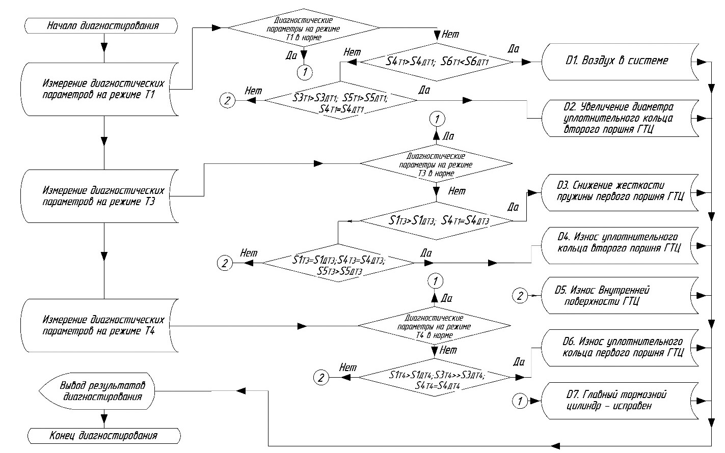 Для практического применения метода был разработан алгоритм постановки диагноза главного тормозного цилиндра (рисунок 2).
