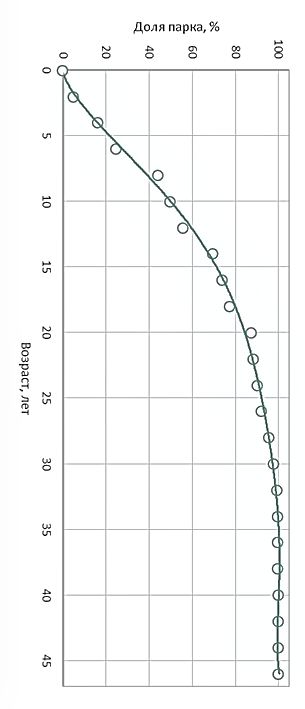Рисунок 2. Интегральное распределение возраста автомобилей
