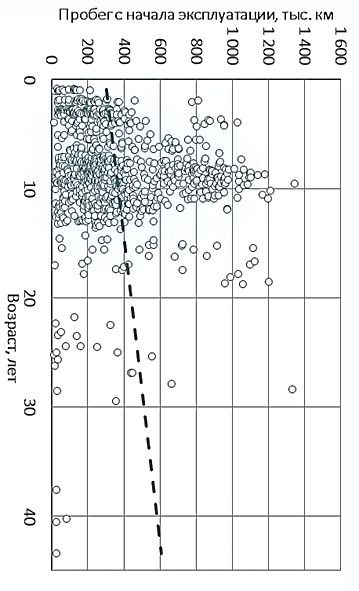 Рисунок 3. Связь между возрастом и наработкой автомобилей