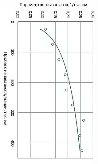 Рисунок 4. Влияние наработки на параметр потока отказов автомобилей
