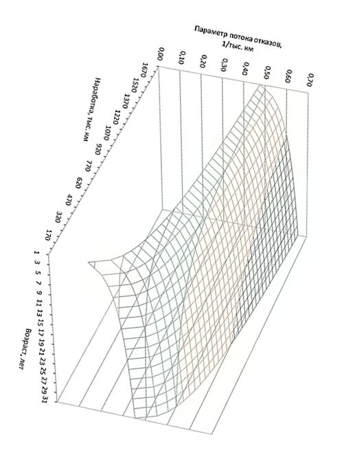 Рисунок 5. Влияние наработки и возраста на параметр потока отказов автомобилей