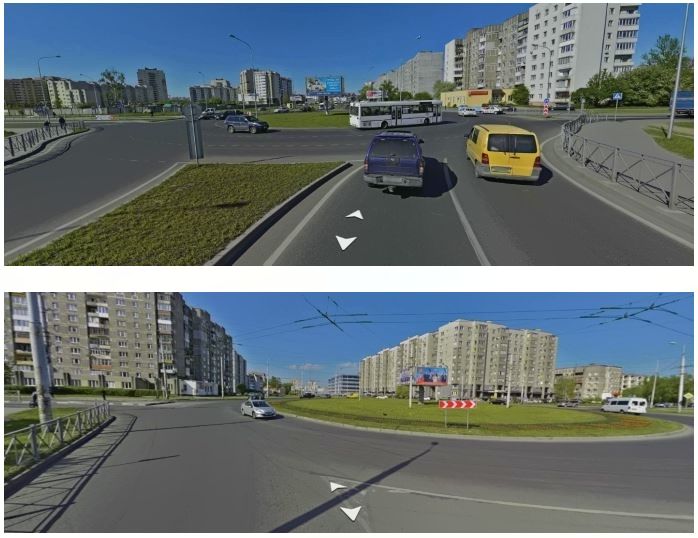 Рисунок 4. Кольцевые пересечения до изменения разметки: Гайдара-Челнокова (сверху) и Гайдара-Горького (снизу)