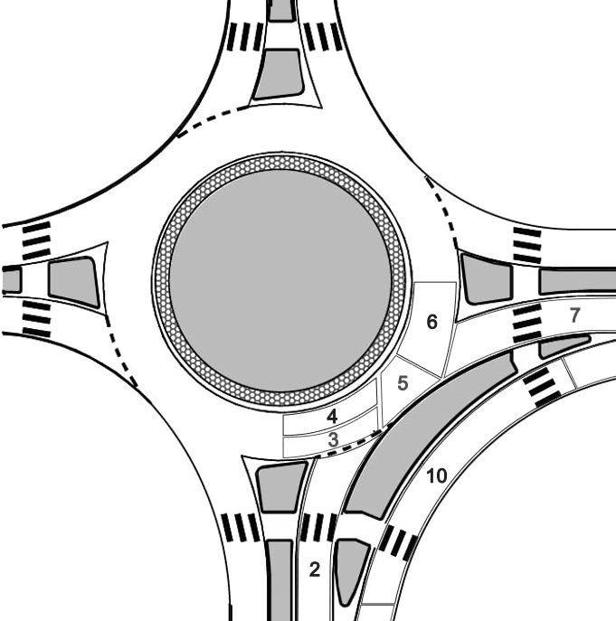 Для привязки ДТП используется схема разделения кольцевых пересечений на участки (рисунок 9) [3].