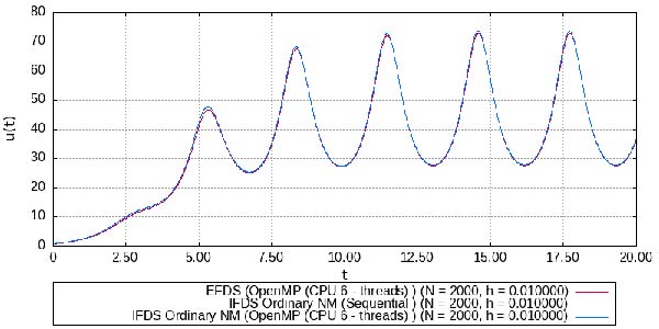 Для замеров времени вычисления рассмотрим тестовый пример, на основе модели (2) со следующими параметрами: ; ; ; ; ; . Результат вычисления по которому представлен на рисунке 1 ниже: