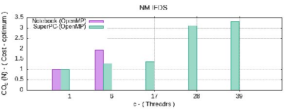 Стоимостно–оптимальный показатель на рис. 5, можно определить как произведение количества используемых потоков и времени решения параллельном алгоритмом, пропорциональной сложности наилучшего последовательного алгоритма. Данный показатель определяется формулой: