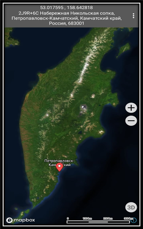 Рис. 1. Объект исследования на карте (Россия, Камчатка, город Петропавловск-Камчатский)