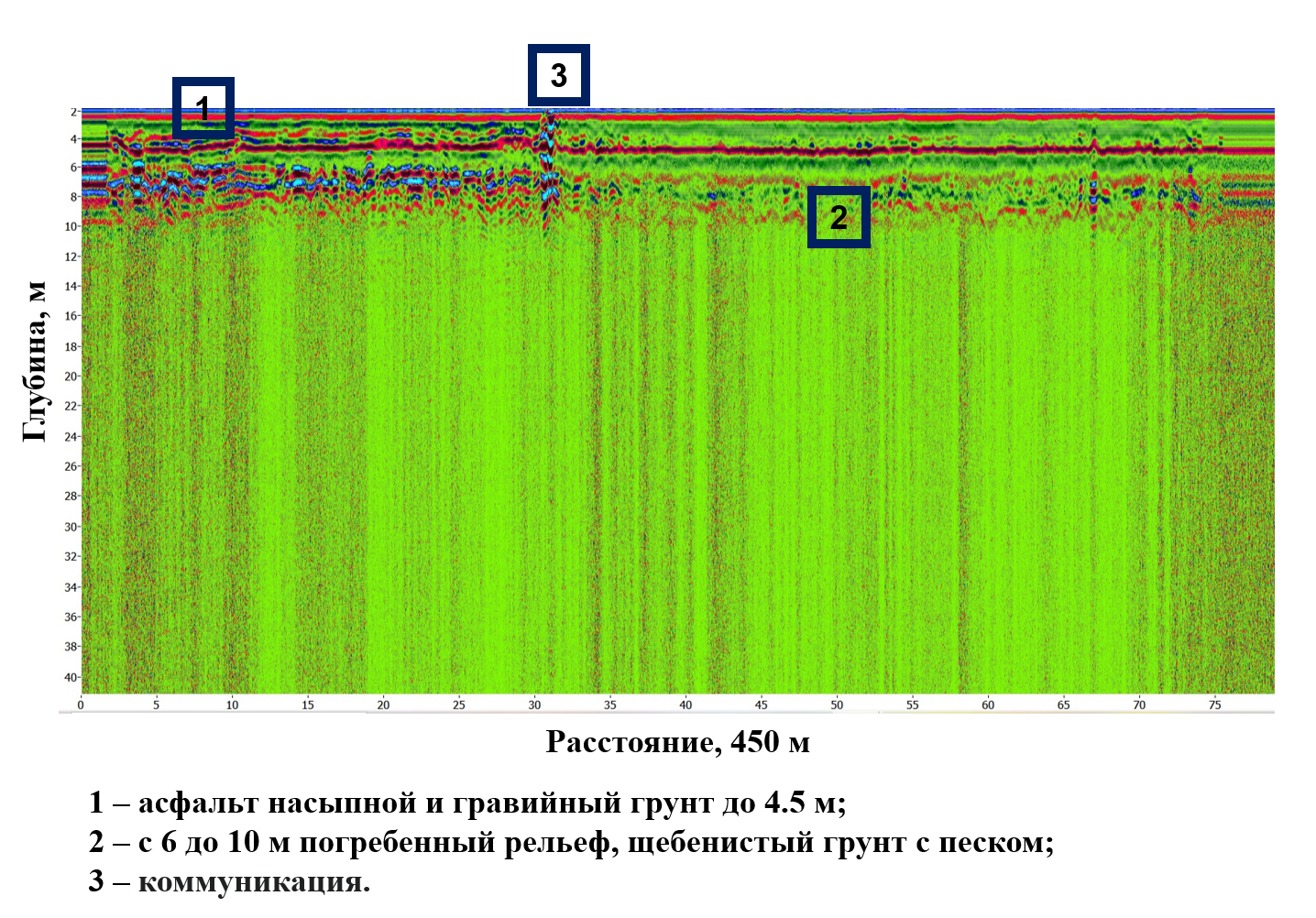 [Figure 4. For example – radargram in the CartScan program (georadar «Triton-M». The Petropavlovsk- Kamchatsky) ]