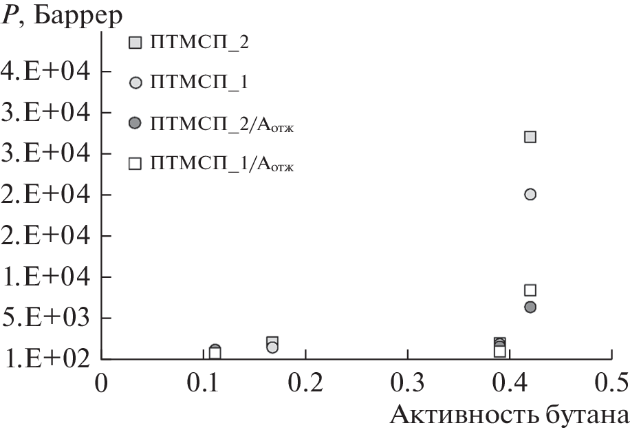 In this work, for the first time, we studied the permeability of individual lower hydrocarbons and in a C1/C4 mixture for films based on PTMSP of a new cis-enriched configurational composition (the content of cis-units in the samples was 80 and 90%). The methane permeability of freshly prepared cis-regular PTMSP films (90% of cis-units) exposed to air for a month is higher than the corresponding values of PTMSP films with 80% cis-units. The X-ray diffraction data indicate a looser packing of the cis-regular PTMSP. The introduction of the antioxidant Irganox 1076 into PTMSP films leads to a decrease in the initial level of the methane flux. At the same time, the permeability of films with the addition of Irganox 1076 over time (within 1 month) decreases much more slowly compared to films without the addition of an antioxidant. The permeability of individual lower hydrocarbons through PTMSP films without and with the addition of Irganox 1076 increases in the order С1 < C2 < C3 < C4. The value of the separation factor in the n-butane/methane mixture reaches 33, which is almost 7 times higher than the selectivity for individual components. The high level of n‑butane permeability of cis-enriched PTMSP is maintained for at least a month of films storage in air.