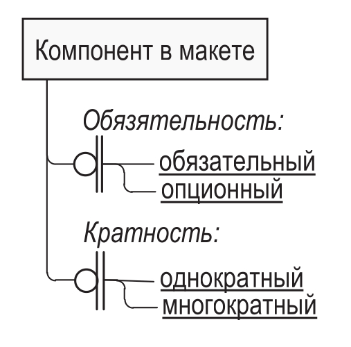 Класс «компонент в макете» (рисунок 5). Экземпляры этого класса подразделяются по признакам обязательности и кратности.