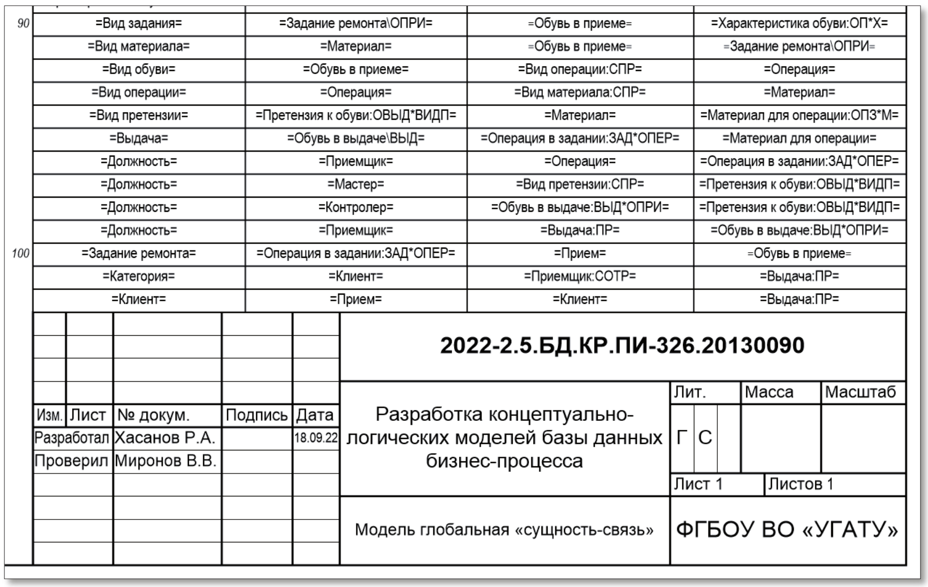 Для построения концептуальной схемы выбрана расширенная модель сущность–связь. Для этой модели известны различные нотации, здесь используется смешанная нотация, которая названа «уфимской».