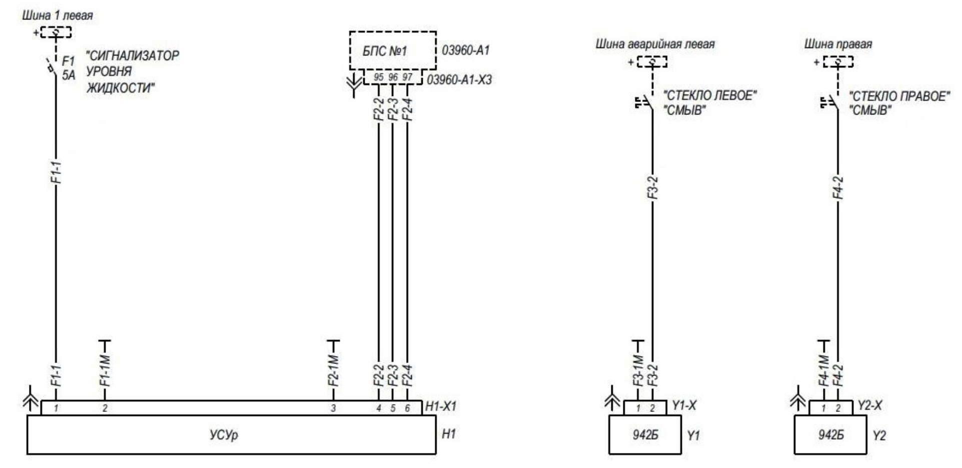 В качестве описания применяемого метода представлен фрагмент схемы Э3 системы смыва осадков и загрязнений лобовых стёкол экипажа среднемагистрального самолёта (рисунок 2) и её графовая модель, дополненная признаками, характеризующими способы подключения к элементам БС (см. рисунок 3).