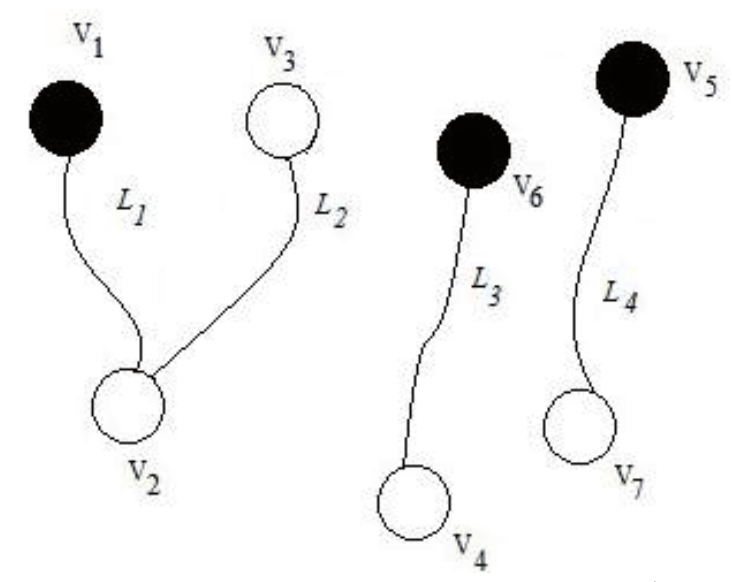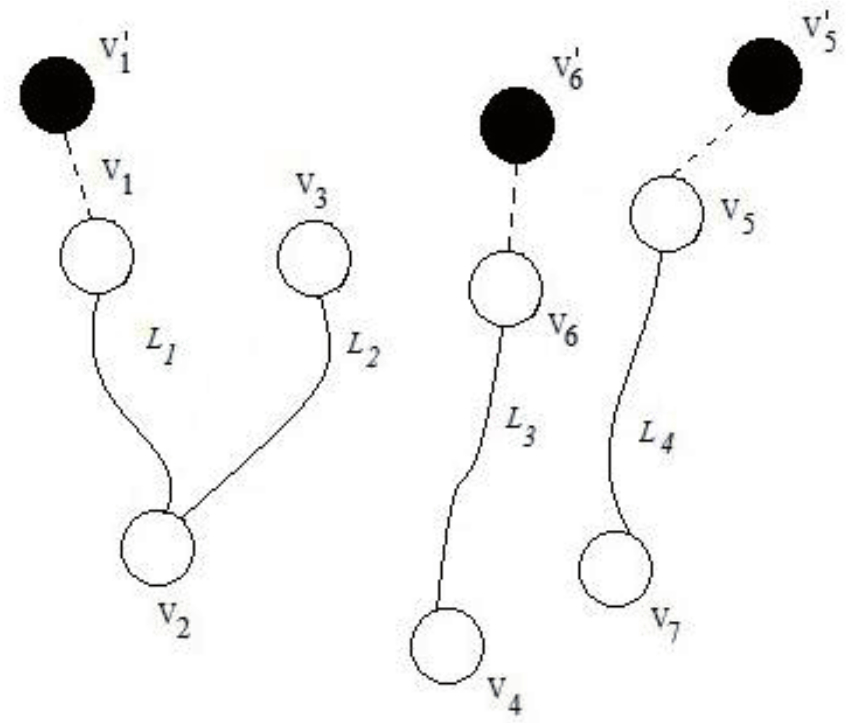 Количество вводимых вершин V○ выбирается в зависимости от количества проводников, их ЭМС, а также функционального резервирования электрических цепей, проводники которых представляют упрощённые модели жгутов L1, L2.