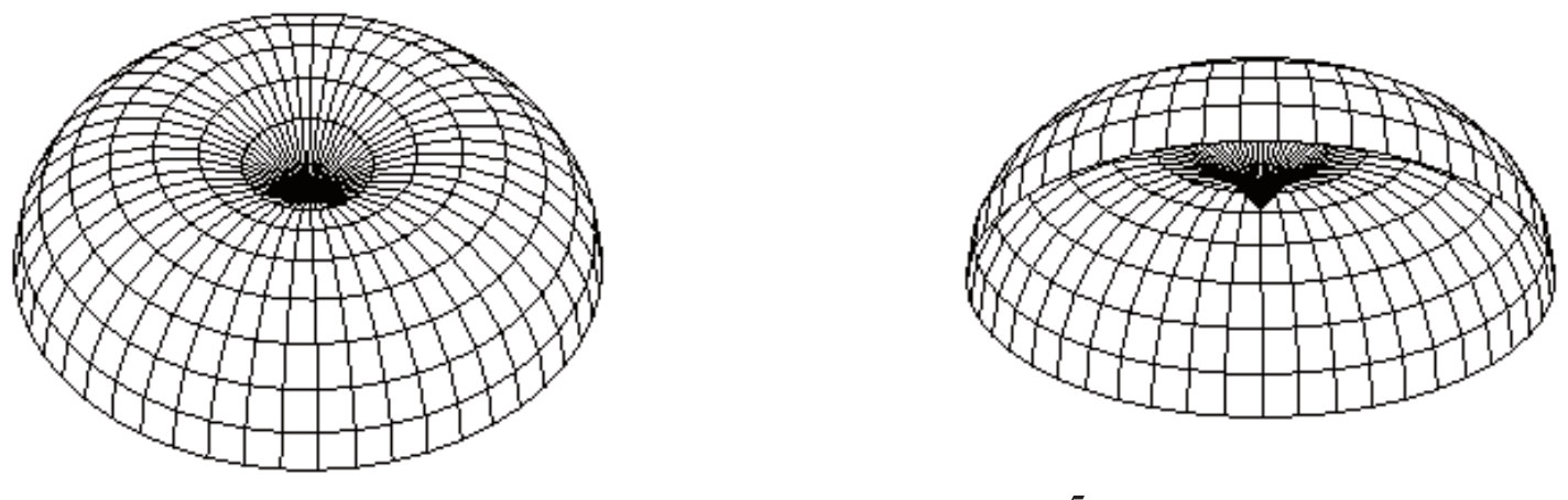 Таким образом, при получается сферическая линия – окружность (6), которую нельзя использовать для представления поверхности (4), поскольку лучи конгруэнции, образованные первоначальным пучком, есть окружности нулевого радиуса.
