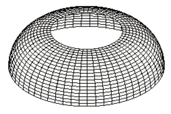 На форму поверхности также влияет параметр n, который соответствует количеству складок. При n = 1 получается дважды циклическая поверхность Иоахимсталя – отсек циклиды Дюпена (рисунок 11а), при n = 2 поверхность напоминает шляпу (рисунок 11б), при n > 2 – появляются хорошо выраженные складки, количество которых равно n.