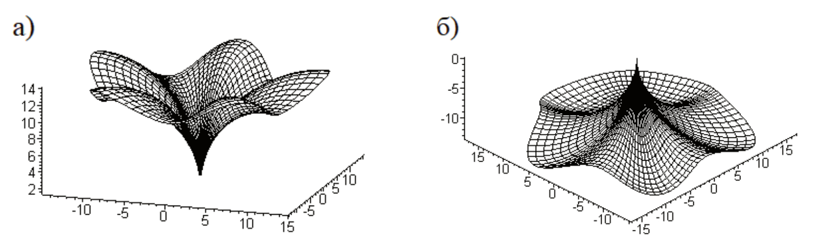 Рисунок 9 – Форма поверхности при смене знака параметра w0: а) при ; б) при