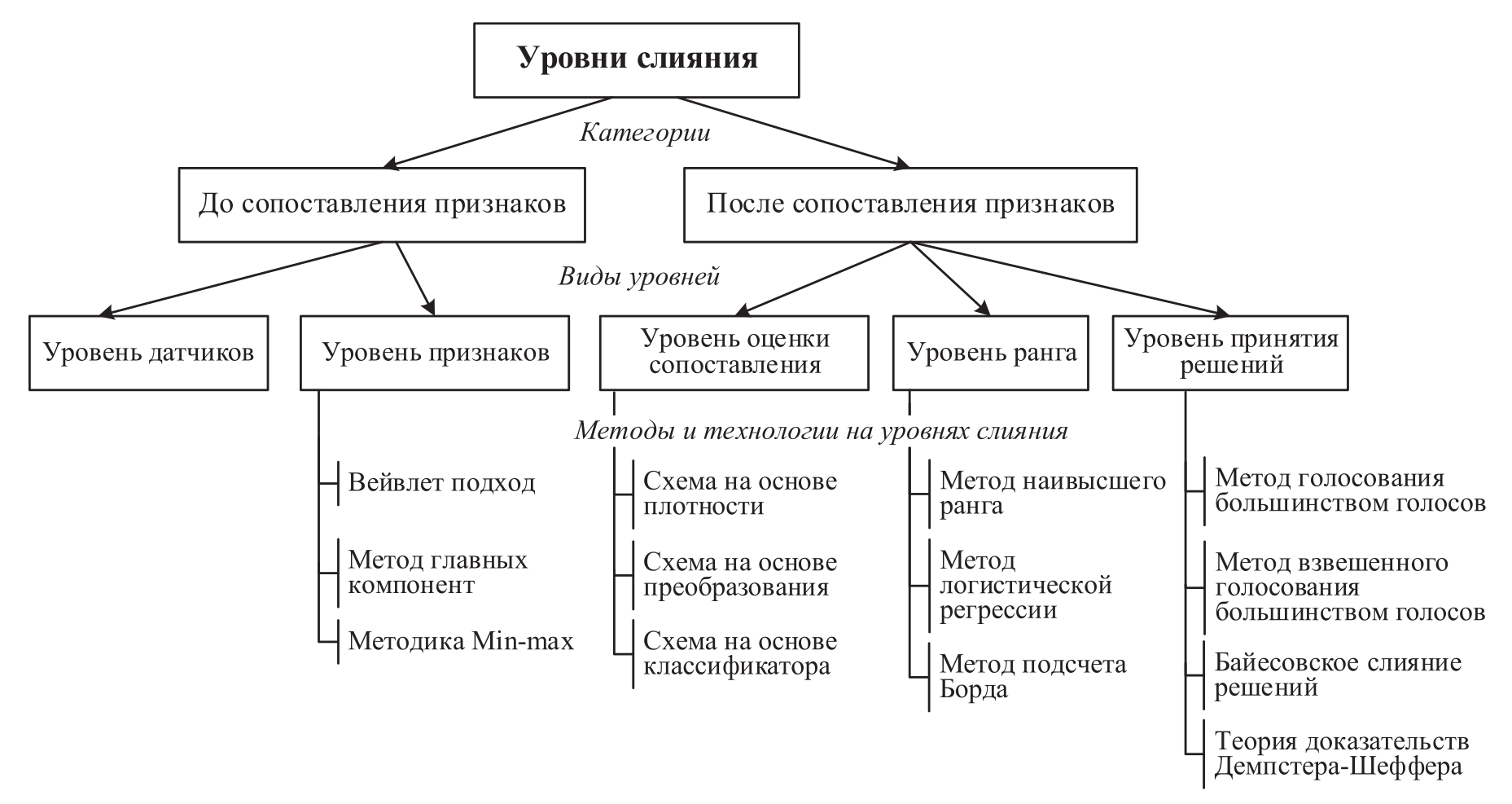 Рисунок 6. Классификация уровней слияния в СКБ