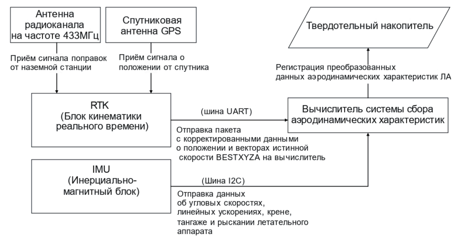 Система сбора информации для расчёта аэродинамических характеристик имеет следующую структуру (см. рисунок 1) и включает: