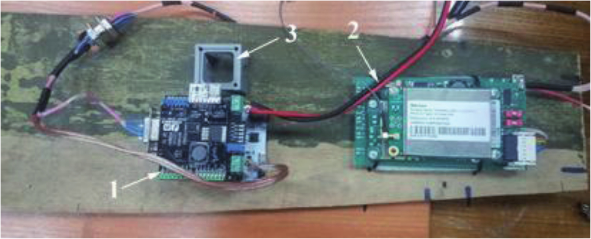 Рисунок 5 – Общий вид аппаратного блока: контроллер (1), блоки RTK (2) и IMU (3)