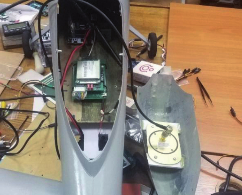 Аппаратный блок устанавливается на платформу в корпус испытательного БПЛА (см. рисунок 6), где он сопрягается с информационной сетью (UART) устройства автоматического пилотирования.