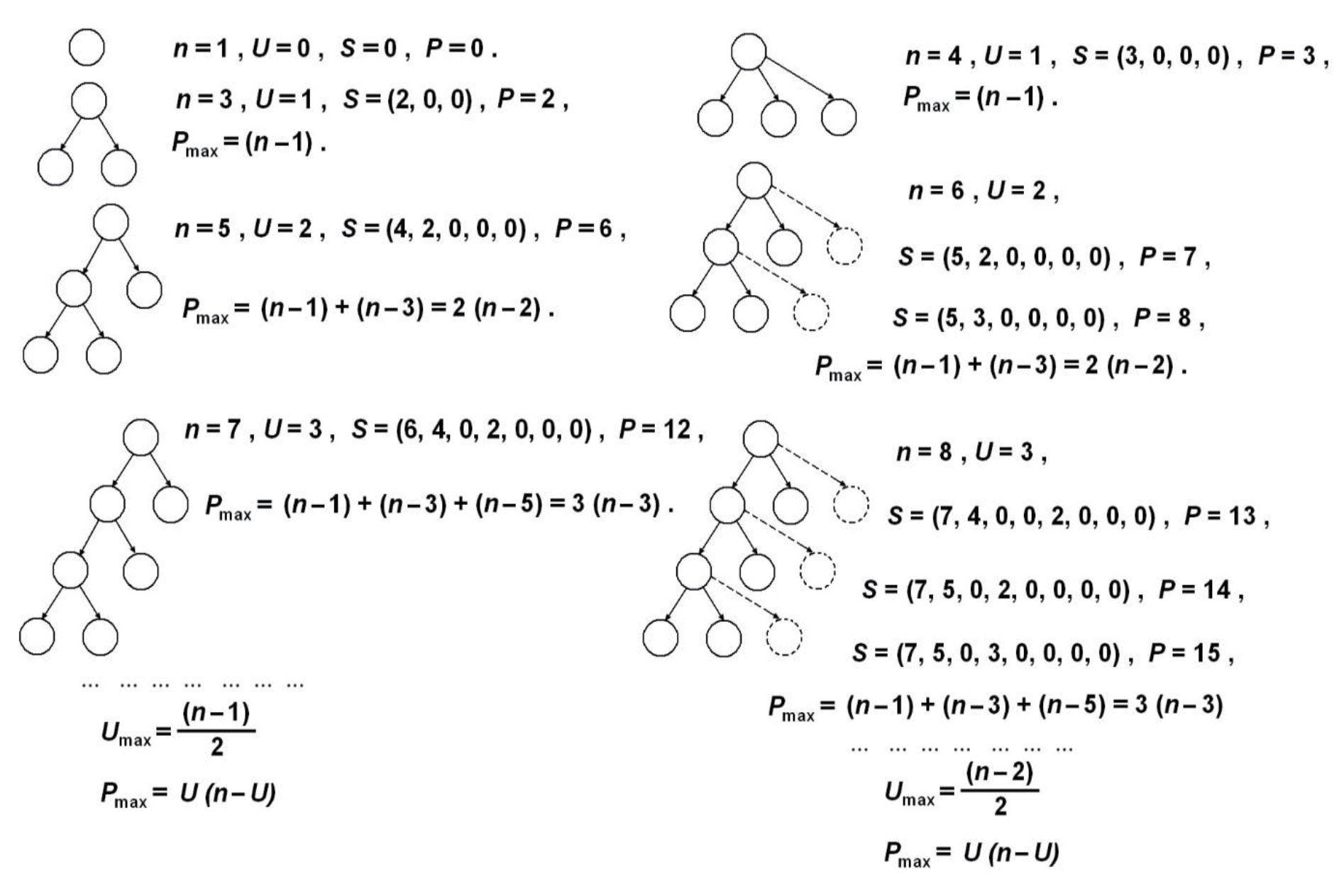 Analyzing the structuring schemes in Figure 3, you can get a general formula for determining the P value that is maximum possible for the given values of U and n: Pmax= U(n-U). Thus, inequality follows from the above (7). Further, substituting in the expression (7) inequality (5, 6), we get inequalities (8, 9), respectively.