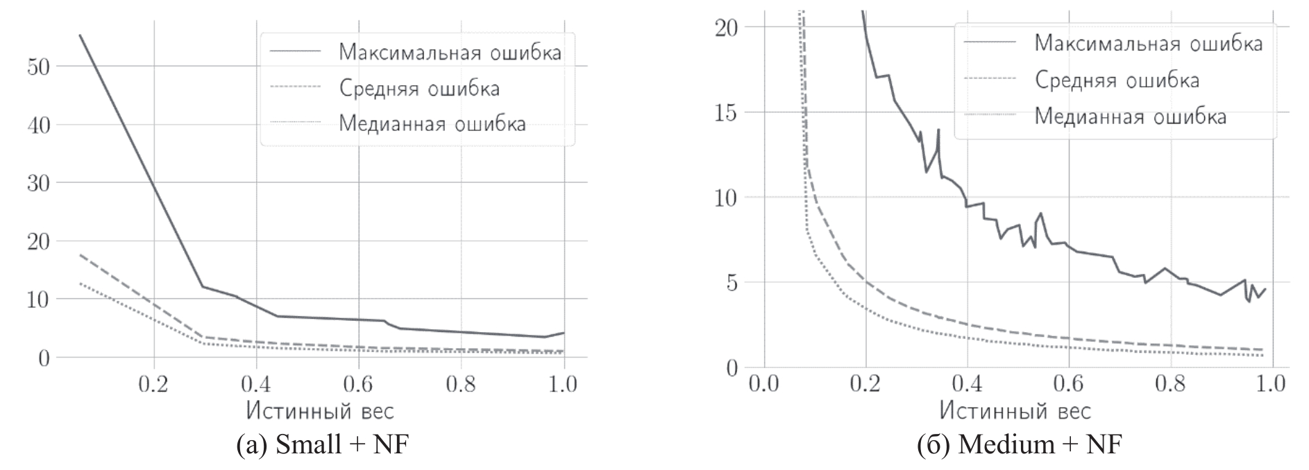 Рисунок 1 – Ошибки источников в зависимости от их истинного веса
