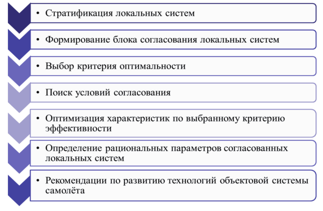 Метод согласования. На Этапе 2 предусмотрена детализация объектовой системы, выбор условий согласования локальных систем, их оптимизация по выбранным критериям эффективности, а также формирование компоновки агрегатов объекта и выбор их рациональных параметров (см. рисунок 11).