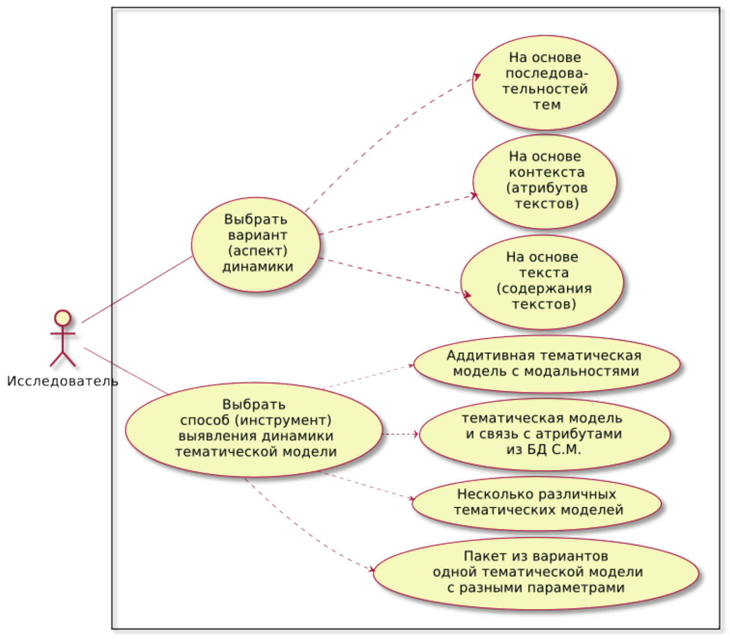 Рисунок 1 – Диаграмма использования. Комплексное исследование динамических свойств результатов тематического моделирования