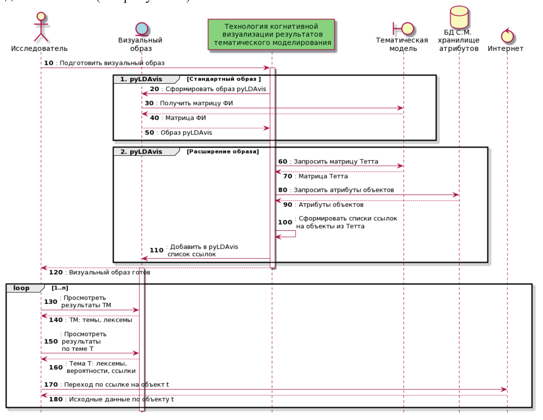 Рисунок 6 – Диаграмма последовательности. Технология когнитивной визуализации результатов динамического тематического моделирования