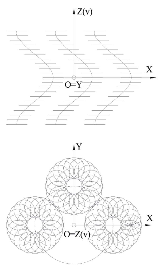 Для каждого фиксированного значения u предлагается рассматривать семейства окружностей на плоскости (рисунок 3) как проекции окружностей некоторого многообразия из четырёхмерного пространства [17, 18]. Пусть каждая из окружностей этого семейства смещена параллельно гиперплоскости XY на величину, пропорциональную параметрам v и u. Тогда семейство таких окружностей записывается уравнениями: