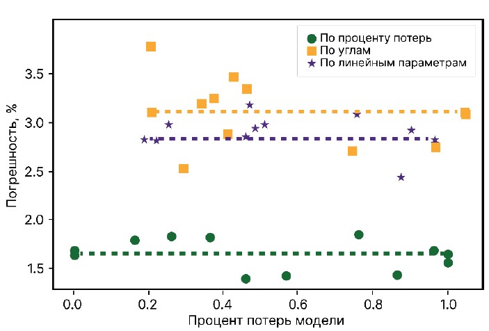 Для сравнения потерь, предсказанных методами РНС и CatBoost, и потерь, полученных в результате CFD-расчёта, определена относительная погрешность