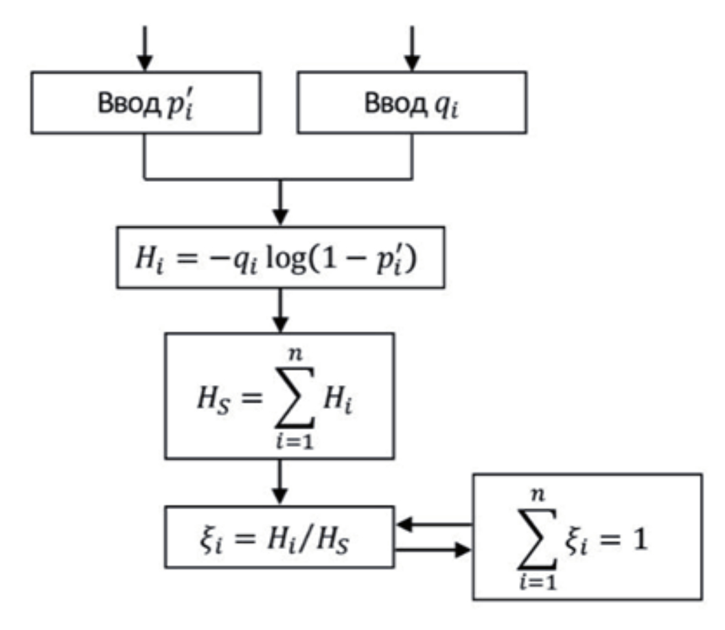 где Нi - значимость i-й части системы (части территории в регионе / городе; члены команды, выполняющие отдельные работы, необходимые для задания; инновационные технологии и сервисы и т.п.); Нii, - собственная значимость i-й части системы при отсутствии влияния других частей; Нij - изменение потенциала i-й части системы при учёте влияния j-й части.