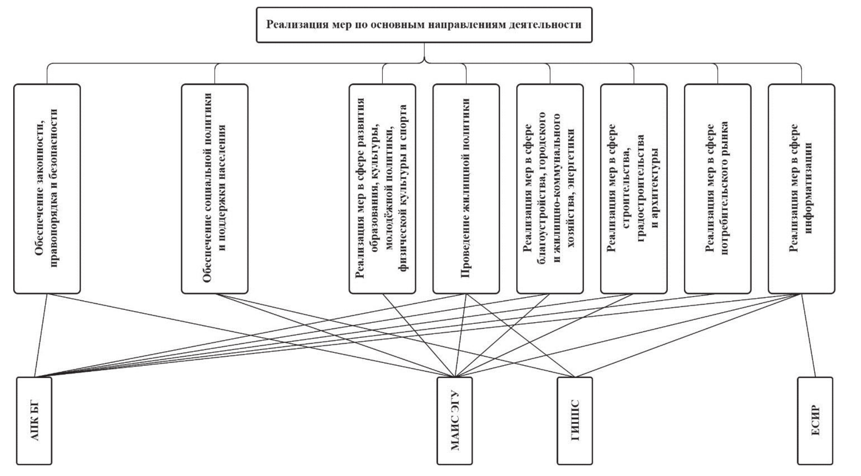 Автоматизированные системы информационного обеспечения административных органов управления районами города начали создаваться с использованием теории разработки автоматизированных информационных систем (АИС), которая в основном развивалась на основе предприятий. Применялся системно-целевой подход, в соответствии с которым формировалась структура целей системы управления районом. Для полноты анализа применялись методики структуризации целей (напр., [6, 8]). На основе оценки целей и функций управления формировалась структура функциональной части АИС и планировалось определение состава информационных массивов для обеспечения функций управления.