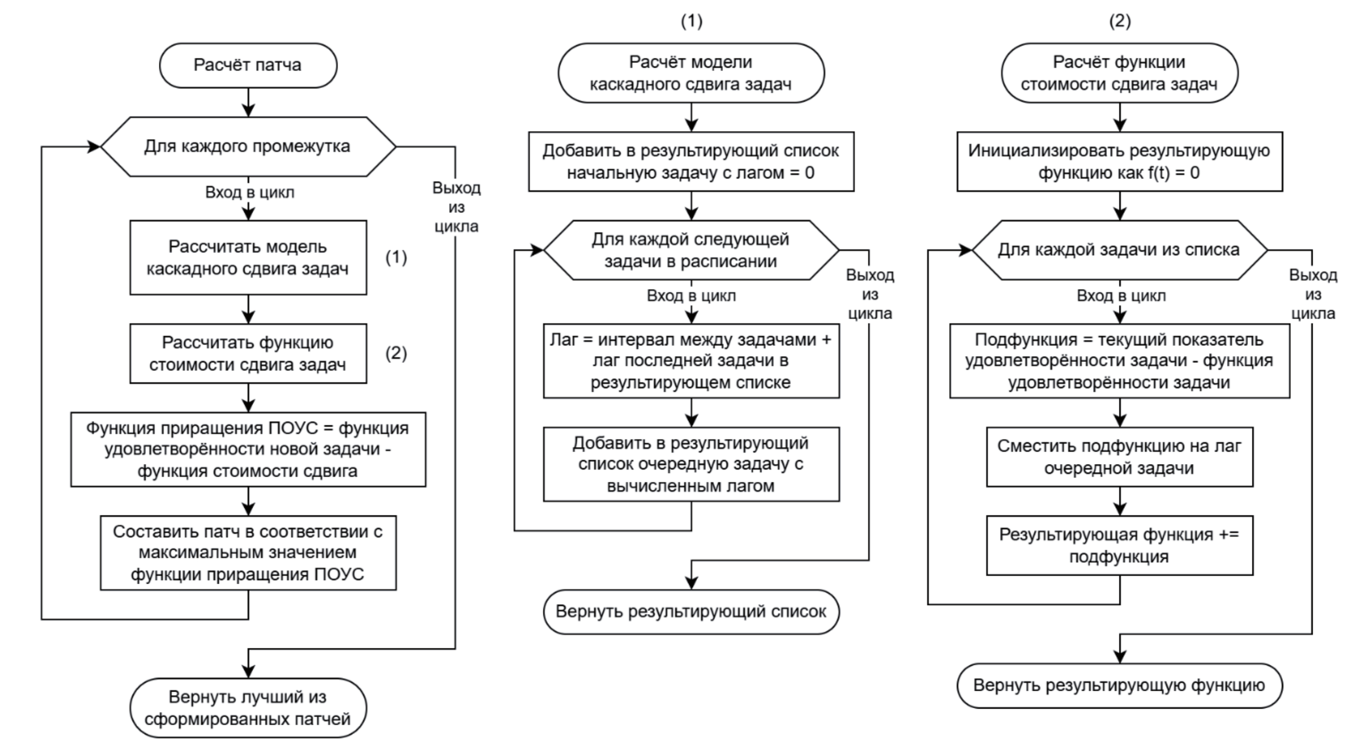Для каждого варианта размещения новой задачи в расписании итеративно применяются следующие этапы алгоритма.