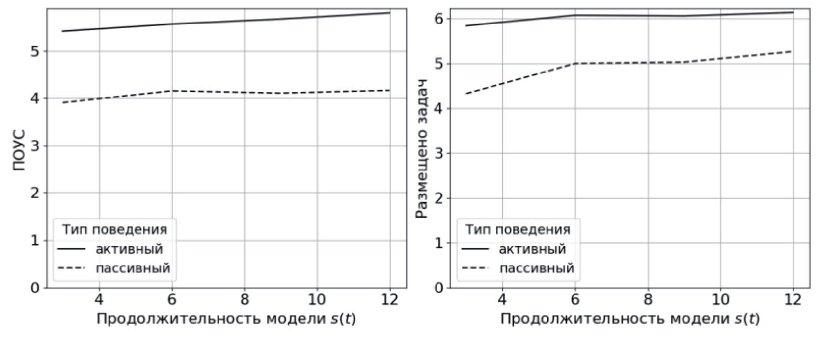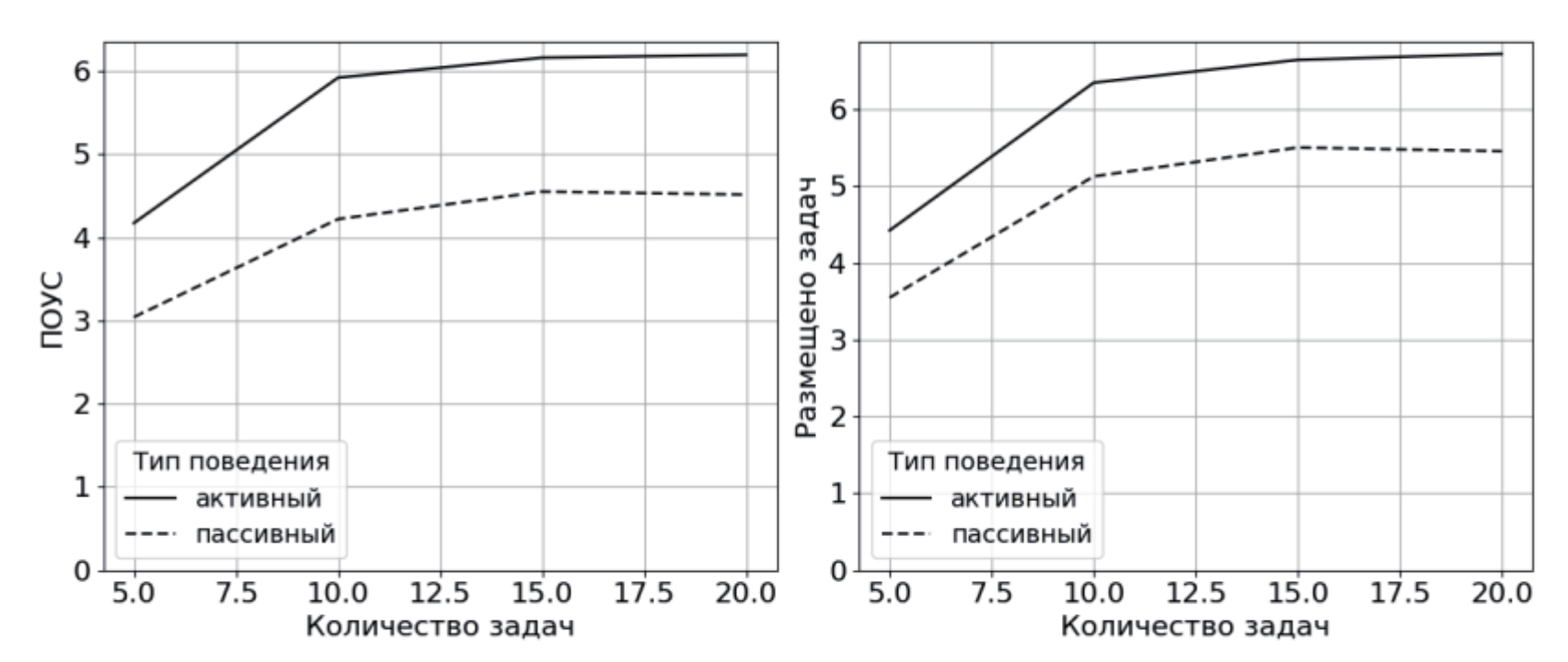 - тип поведения агента задачи – активный или пассивный (пассивное поведение соответствовало следованию традиционному алгоритму, активное – предлагаемому);