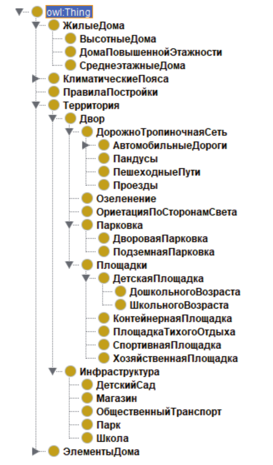 Рисунок 3 – Иерархия классов онтологии (фрагмент)