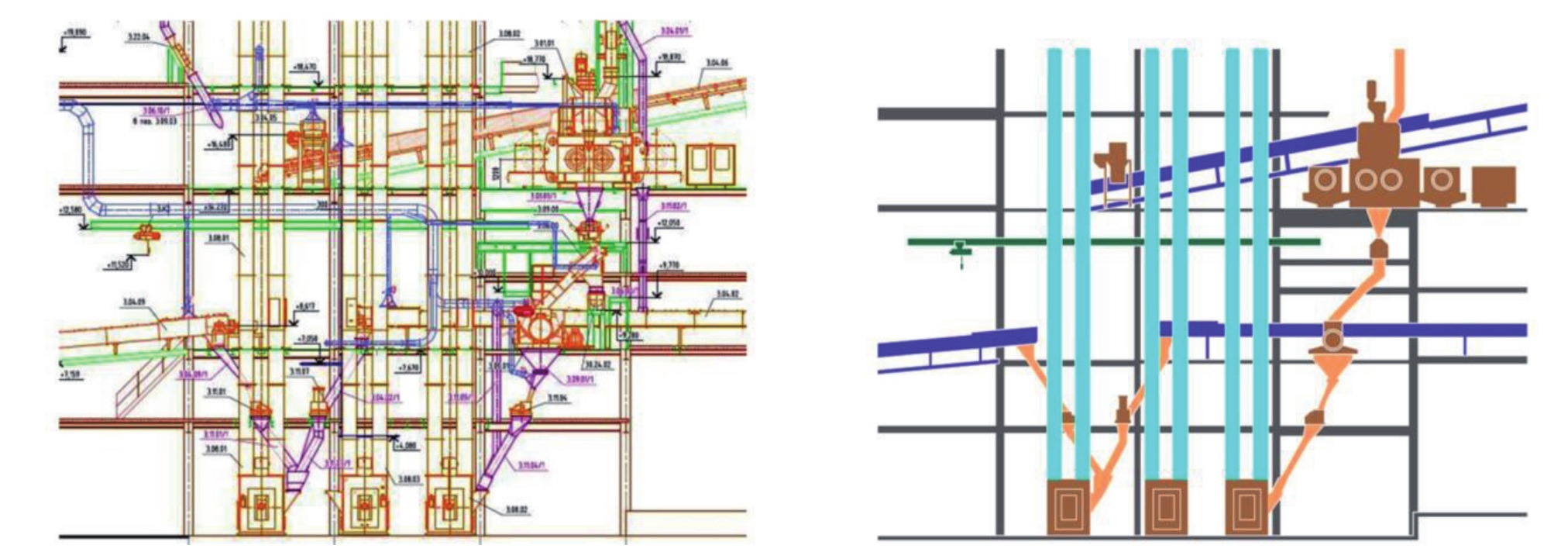 Концептуальность. На рисунке 3 приведён пример «сырого» (слева) и концептуализированного (справа) чертежей. Концептуализировать чертёж – значит отбросить лишнее, не имеющее в данном контексте отношения к делу, и оставить только необходимое.