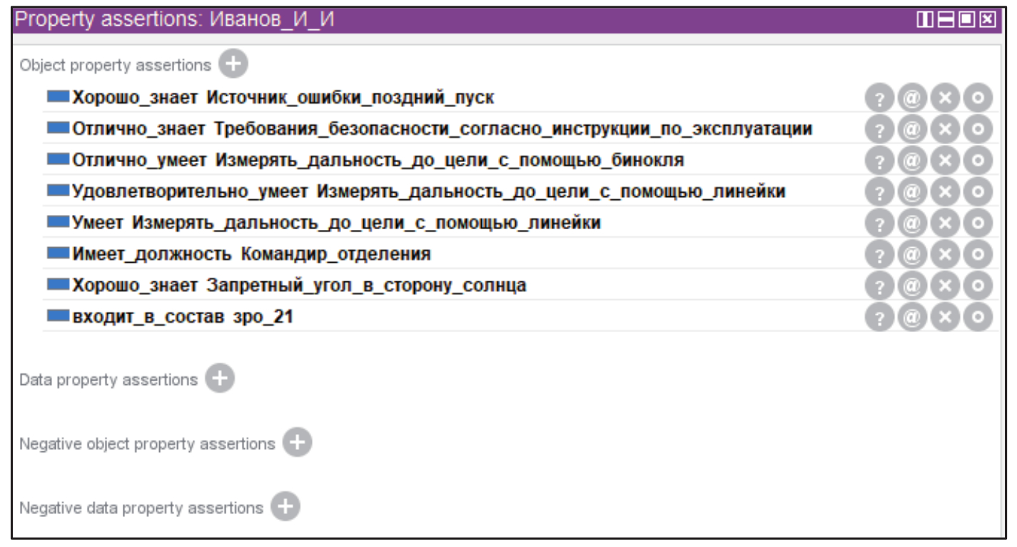 На рисунке 5 приведён пример запроса к метаонтологии о специалистах, изучивших требования безопасности. По результатам запроса руководителю занятия выводится информация о членах группы, изучивших этот вопрос.