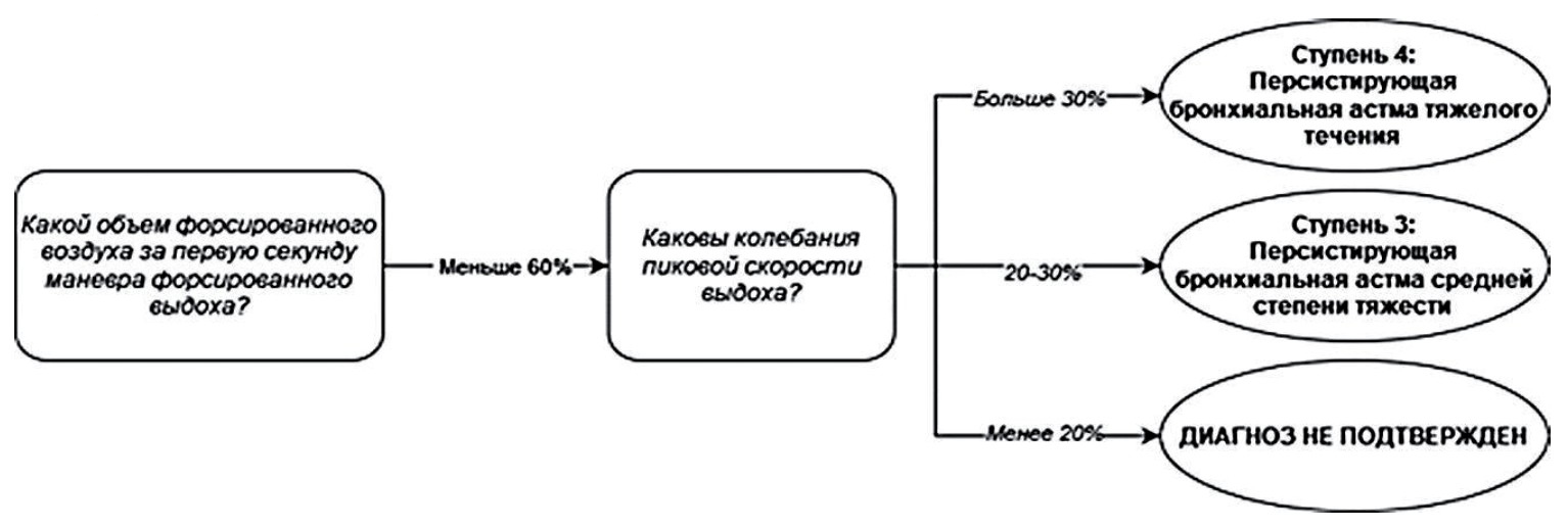 Рисунок 3 – Фрагмент одной из ветвей дерева принятия решений по диагностике бронхиальной астмы