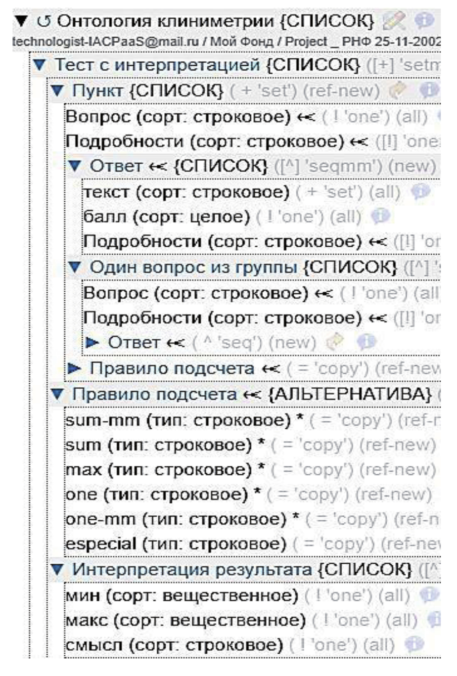 Рисунок 3 – Онтологическая модель клиниметрии (фрагмент)
